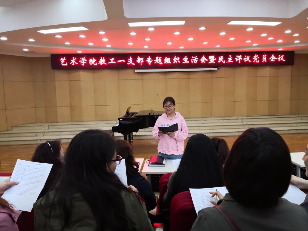 按照校党委组织部《关于做好2018年度基层党组织组织生活会和开展民主评议党员的通知》,艺术学院教工一支部于4月11日下午2:30在12号楼东排练厅召开专题组织生活会暨民主评议党员会议。会议由教工一支部书记张鹏主持,研究生支部书记范晓荣列席,15名教工一支部党员参加。