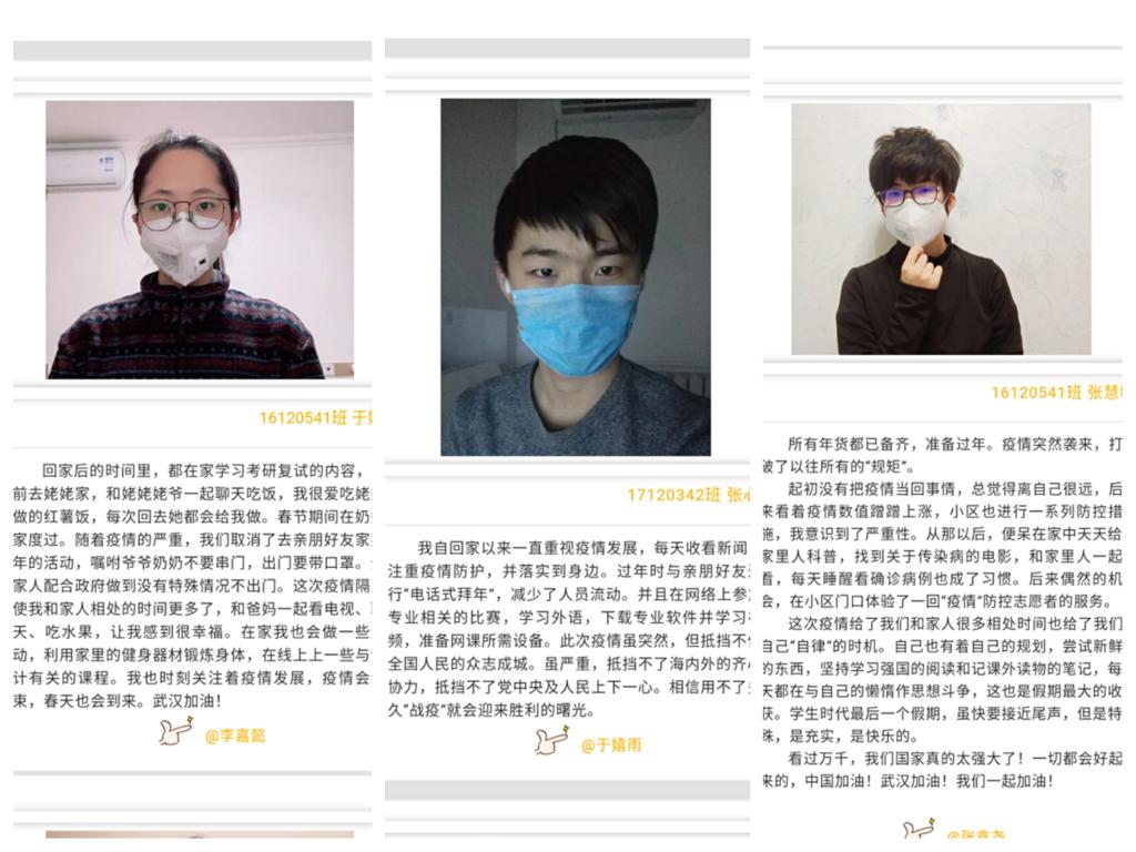 学生党员的率先垂范,引领着疫情期间在家上课学习的大学生们珍惜当下时光,不负时代所期;同时党员们线上畅谈了抗疫战斗期间自己的体会和思考并送上了祝福与感恩——和衷共济是一城的坚守,同心同德是全国的支持,为武汉、为中国祝福加油,致敬战斗在防疫第一线的所有工作者们!坚信全国人民齐心协力众志成城,打赢这场防疫战斗!