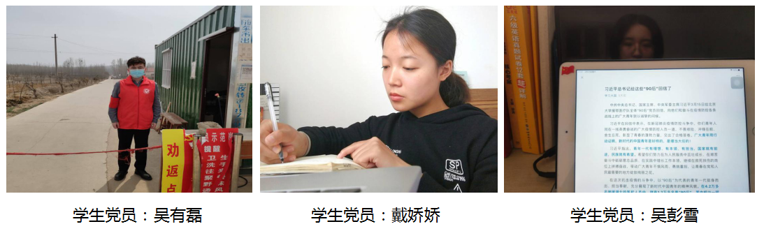 本科生一支部副书记戴娇娇同学表示:在这场战疫中,“90后”不畏艰险、冲锋在前,成了中国又一代最勇敢的人。他们用实际行动履行了自己的担当与责任,以拼搏奋斗的精神展示了青年一代蓬勃向上的力量。我们将牢记习近平总书记的嘱托,以天下事为己任,为国为民奉献的志向坚定不移,对人民的坚守无怨无悔,为民族复兴拼搏奋斗的赤子之心始终不改,让青春在党和人民最需要的地方绽放绚丽之花!