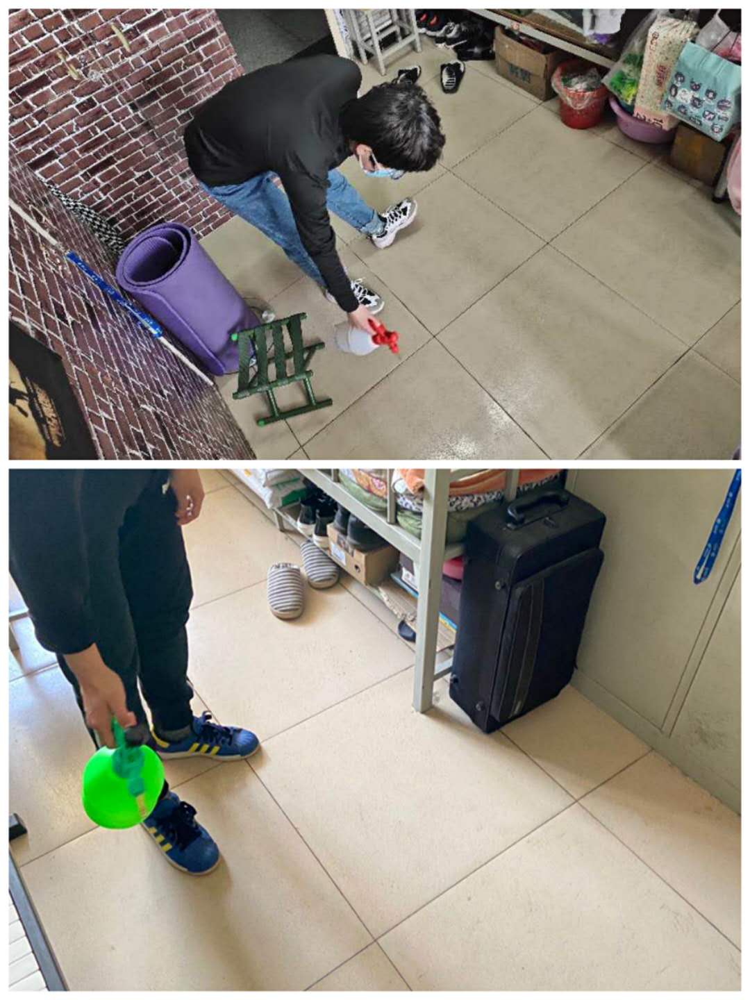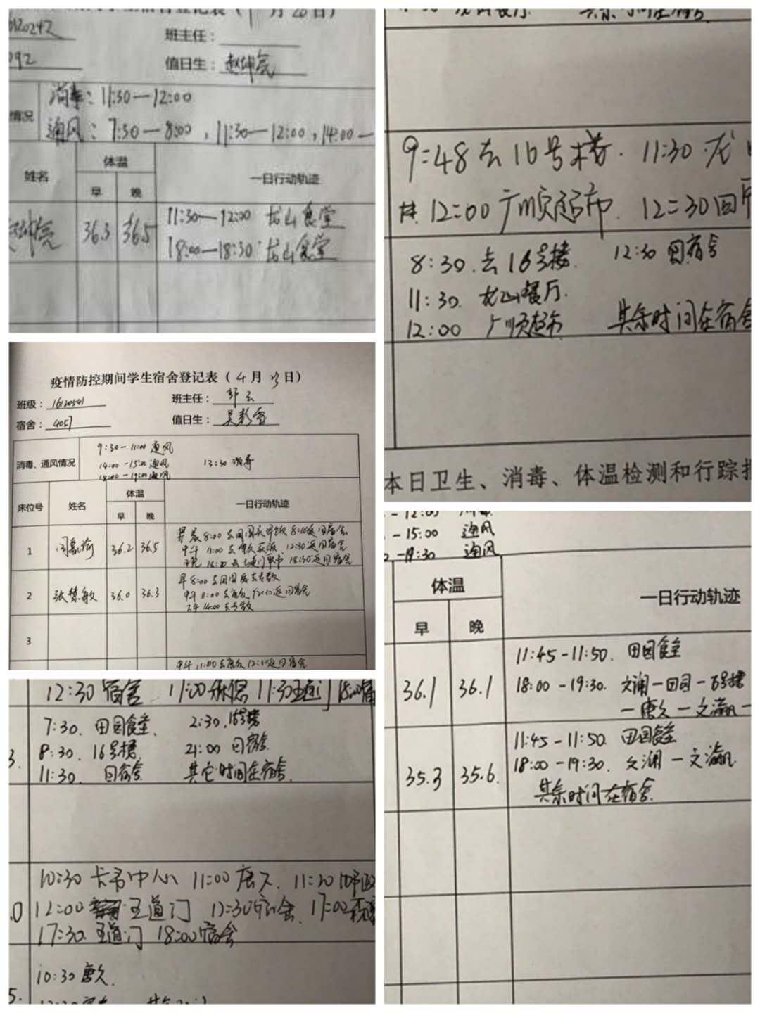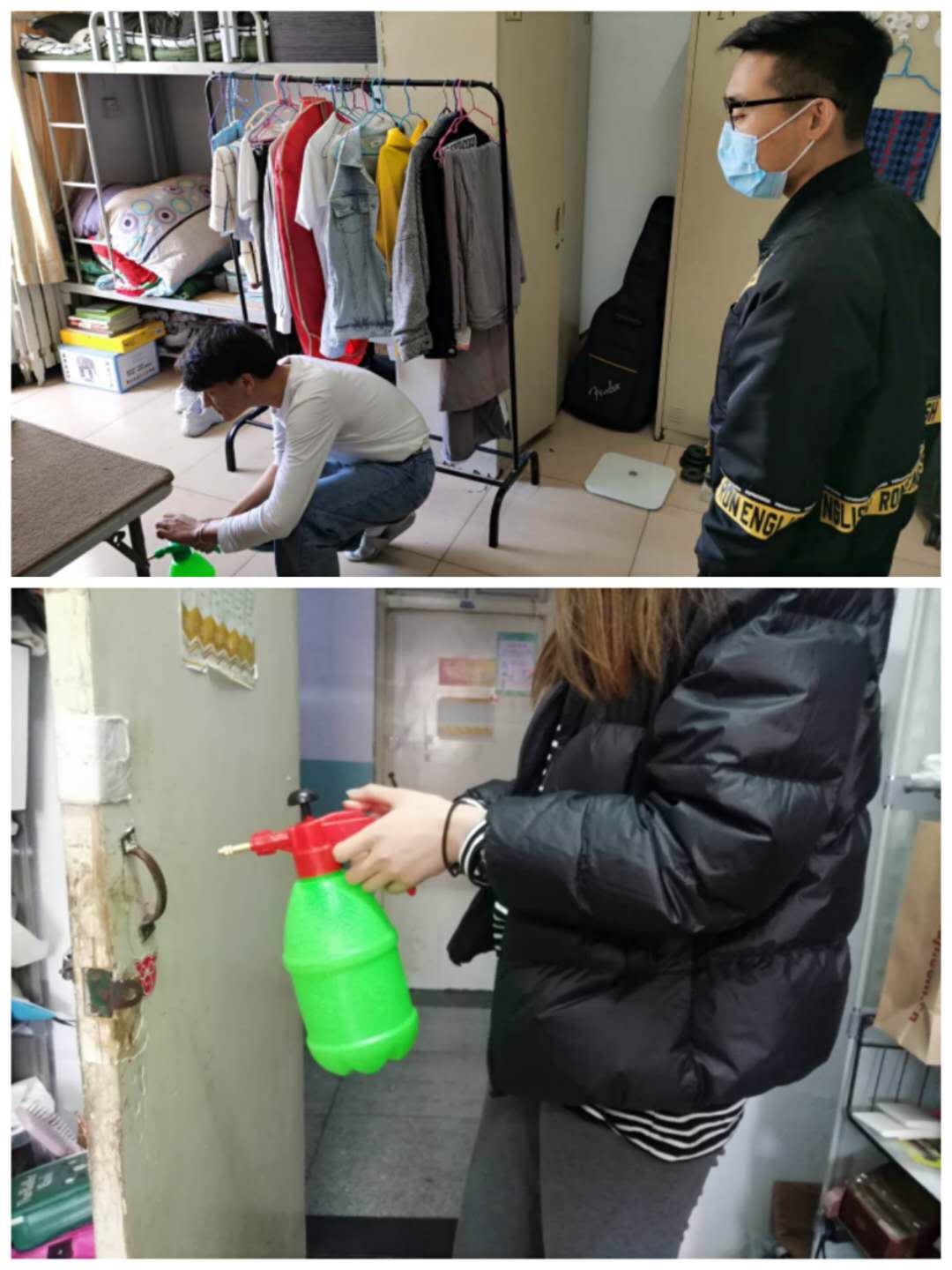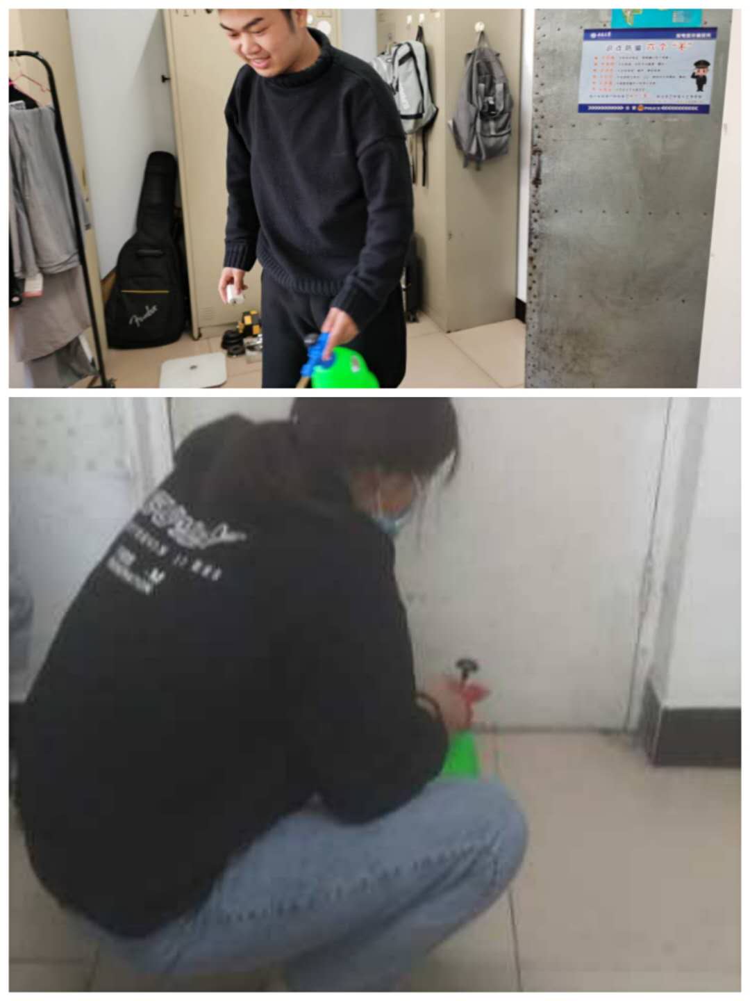 工作一安排,学生党员们以高度的责任感和积极向上的精神风貌来保障返校同学的日常通风消毒作业。消毒看似很简单,背后却藏着大学问,学生党员冒着刺鼻的水雾分别对各宿舍的地面、门把手、灯开关、物体表面等接触频繁的部位进行消毒处理,对消杀喷雾器不易喷到的地方进行擦拭。返校同学们也积极配合,如实填写着一日行踪记录。面对疫情,我们有坚定的信心,发扬同舟共济、守望相助的精神。
