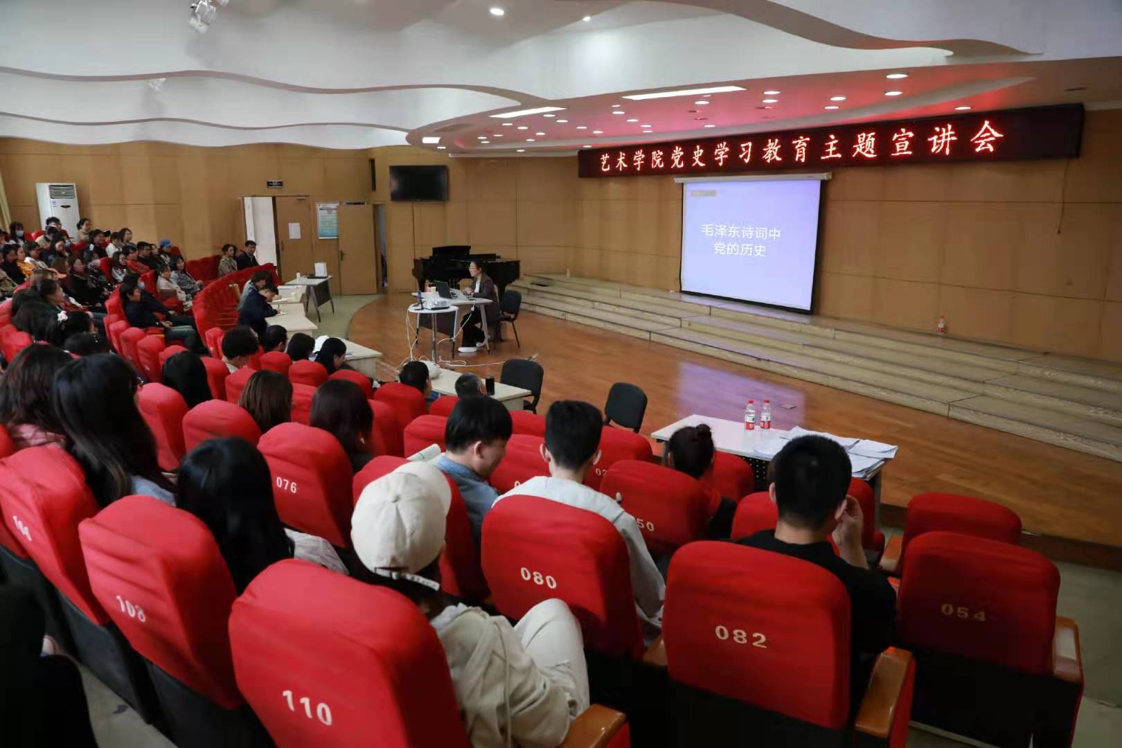 2021年3月30日下午,艺术学院党委邀请中北大学党史学习教育宣讲团王晓丽老师以《毛泽东诗词中的党史》为题,为全院师生党员作了专题讲座,学院党委书记夏瑞丽主持。
