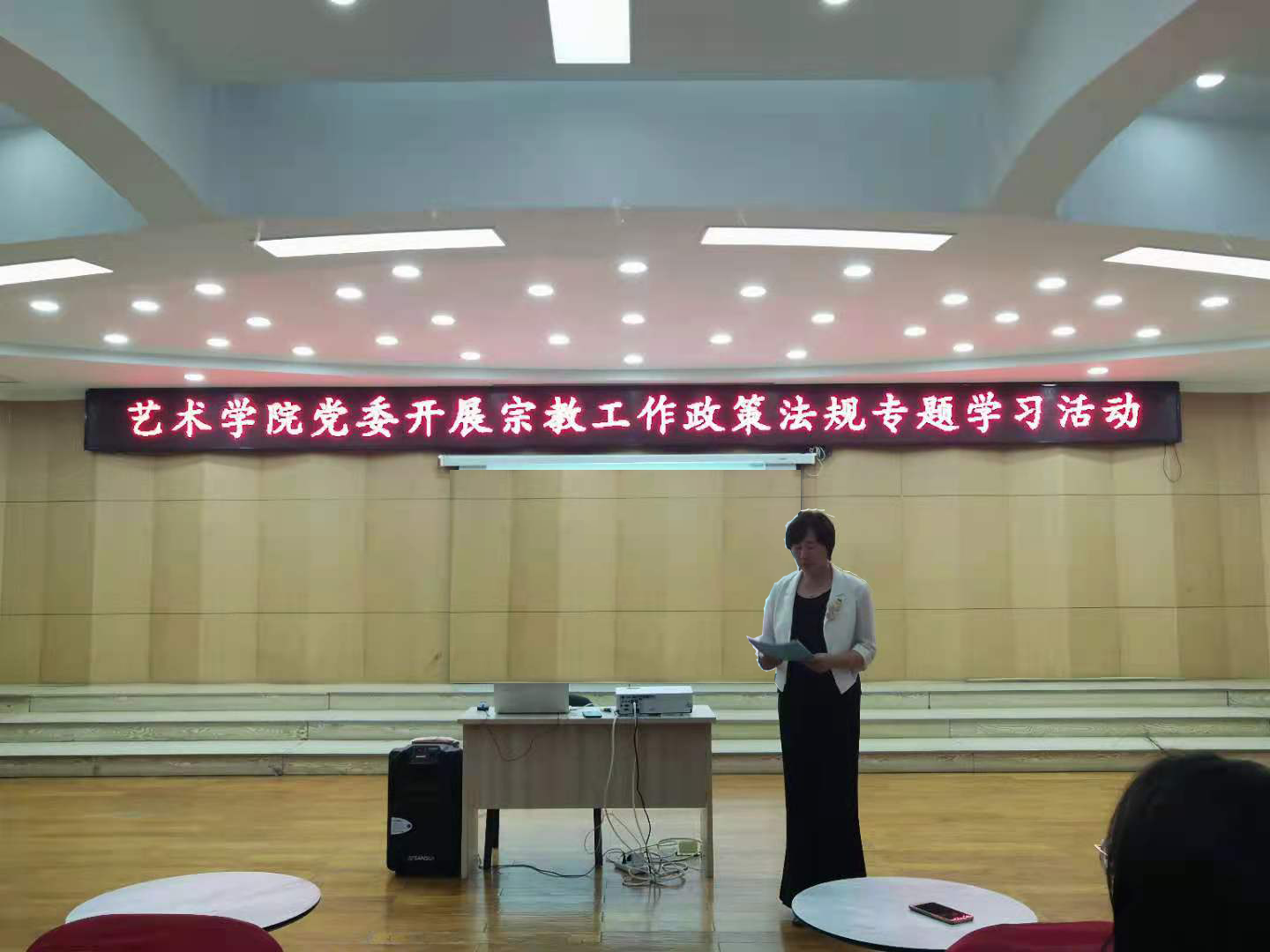 为深入贯彻落实宗教政策法规,进一步提高广大师生对宗教政策和相关法律法规的认识,增强遵守宗教政策法律法规、尊重少数民族风俗习惯的自觉性,7月1日上午10点,艺术学院党委组织师生开展宗教工作政策法规专题学习活动。