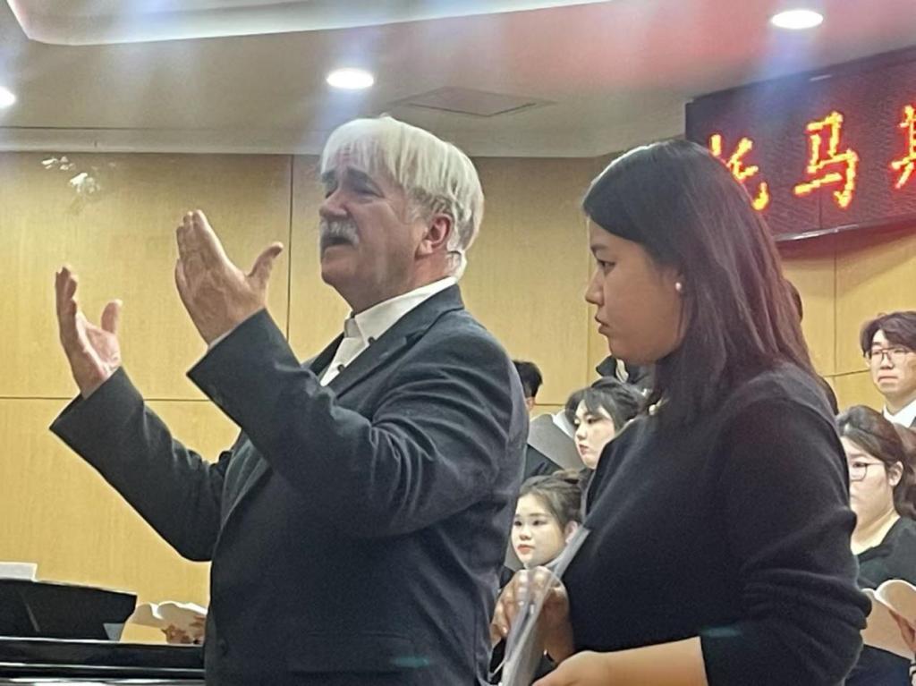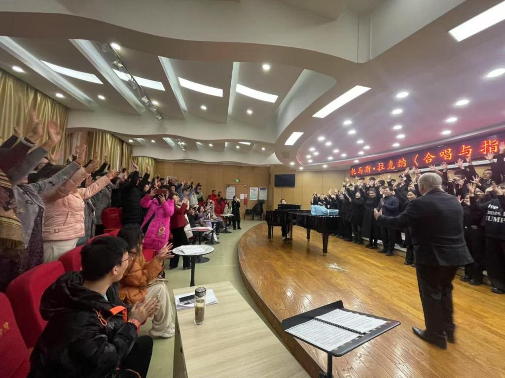 2025年1月9日下午3:30,一场观众与演员全员参与的“托马斯·拉克纳《合唱与指挥》教学成果音乐会”在中北大学泓学楼一层东成功举行。此次音乐会展示了中北大学艺术学院音乐系学生们在1月4日——1月9日为期5天密集学习、与拉克纳教授共同努力的成果,吸引了大量合唱爱好者、音乐教育者前来观摩,成为了合唱音乐朋友的一次盛大聚会。