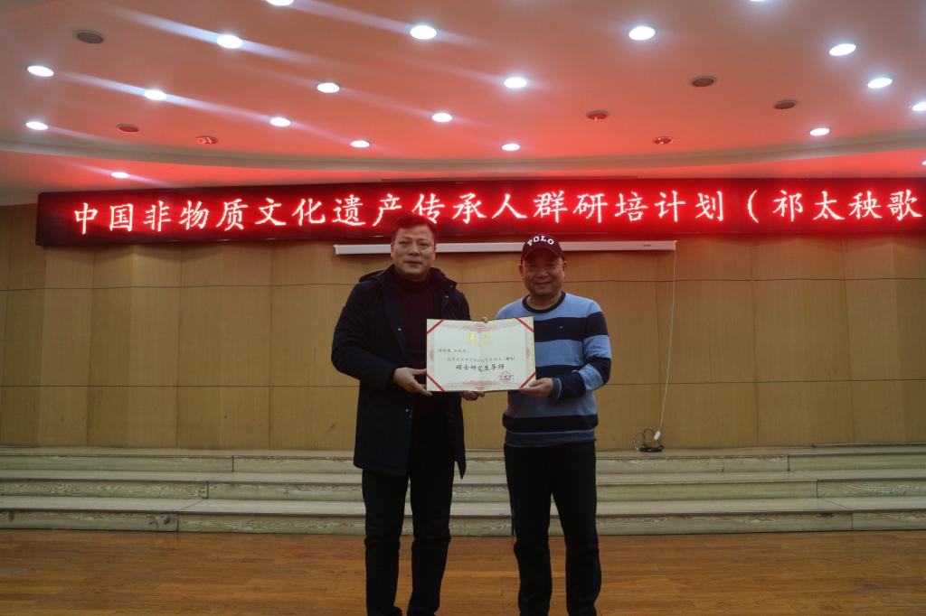 最后,艺术学院院长王燕平教授为高山团长颁发了“中北大学艺术学院硕士生导师”聘书,并诚挚邀请高团长能够经常亲临我院进行指导。
