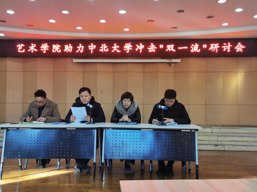 为助力中北大学冲击“双一流”建设发展,2021年1月5日下午,艺术学院召开助力中北大学冲击“双一流”研讨会,会议由院党委副书记田维飞主持,院领导及全体教职工参加了会议。