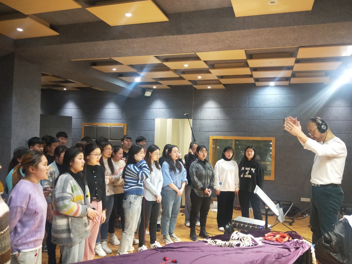此次录制工作,将混声合唱《唱支新歌给党听》植入课堂,在学生中浸入“在党旗下成长”的文化自信理念,特别邀请原创作者甘霖教授亲临指导,录制歌曲音频作为合唱示范,在庆建党百年华诞之际在全国传播推广。