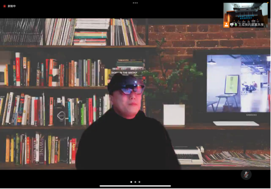 在讲座中王成良老师借用MR的技术手段,实时的展示头戴式设备的产生效果,和同学们同时观看数字效果,形象生动地讲解了数字博物馆数字激活,并详细介绍了5个数字化案例,分别是山西大同文昌阁,山西晋中大阳古城,北京动物园,甘肃武威雷台景区天马湖,Materverse Property NFT数字虚拟地产。