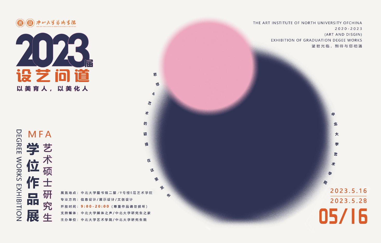 思想&艺术在这里碰撞,执着&热爱在这里绽放。中北大学艺术学院2023届MFA艺术硕士(艺术设计领域)线上毕业展于2023年5月16日如期发布,线下展览于图书馆二层展厅同期开展,欢迎各界设计爱好者们前来交流与互动。本次共展出19名学生的毕业设计作品,涵盖文创及品牌设计、信息视觉设计、展示视觉设计三大方向,呈现了设计作品的风采与特色,也展现了他们对艺术新形式、新领域的积极探索与求知精神。