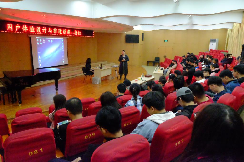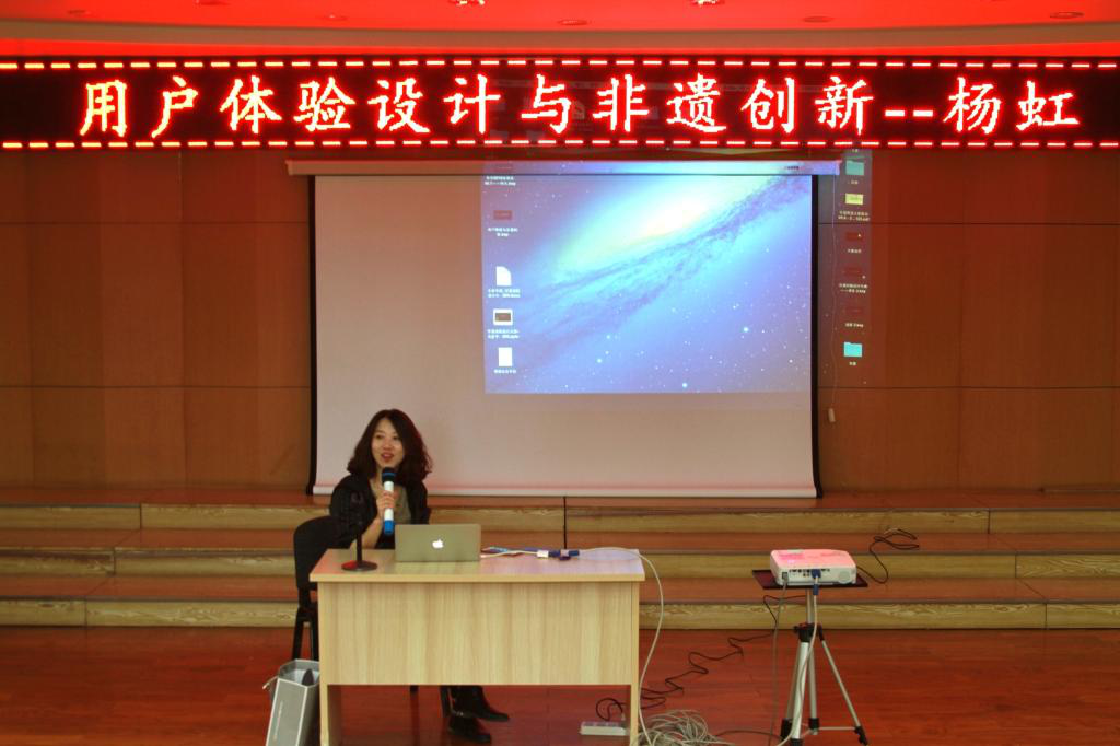 2018年3月23日,《用户体验设计与非遗创新》专题讲座在艺术学院东排练厅举行,主讲人杨虹是永新华韵文化发展有限公司高级项目经理、非遗创新设计大赛负责人、夸克实验室联合创始人、阿里集团优酷高级UI设计师、方正字库字体设计师。杨虹主要从用户体验设计的方法论出发探讨非物质文化遗产的资源数字化与创新设计。
