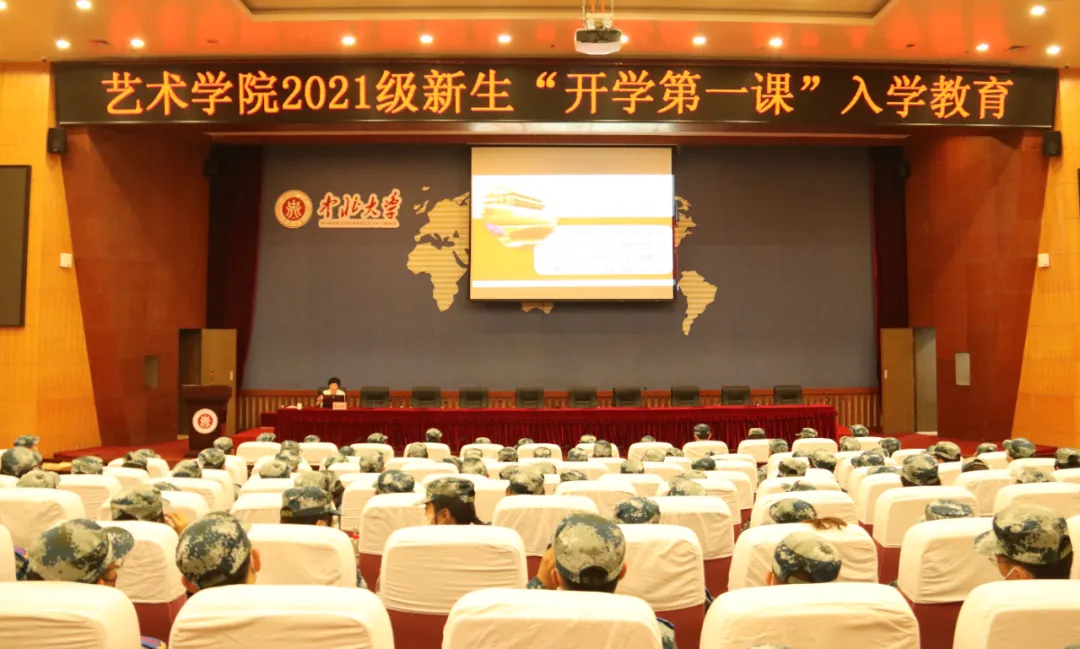 2021年9月14日下午4:30,艺术学院党委书记夏瑞丽在图书馆五层报告厅为艺术学院2021级全体新生讲授主题为“学史增信,做新时代优秀大学生“的开学第一课。