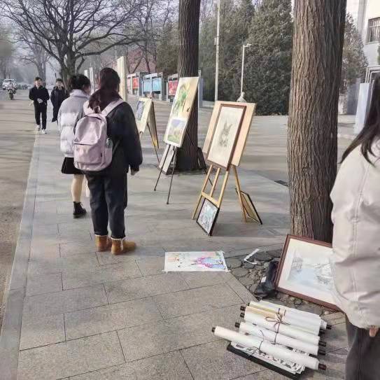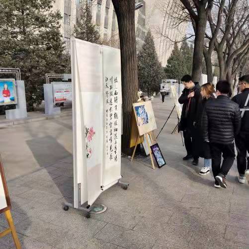为深入学习贯彻习近平新时代中国特色社会主义思想,继承和发扬“一二·九”爱国主义精神,12月9日,中北大学艺术学院分科协联合耕砚书画社举行了纪念“一二·九”运动的大学生书画作品展,并在中北大学中央大道展出,同时院党委副书记田维飞、刘维佳老师等来参观指导。