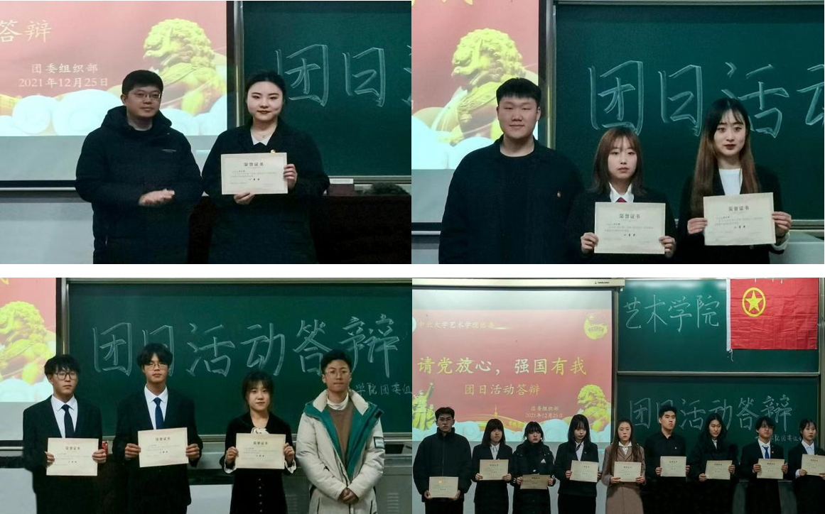 至此,2021年艺术学院主题团日活动答辩圆满结束,感谢各团支部人员的积极参与,也感谢田维飞副书记、学生会主席团和各院团委副书记及组织部部长的精彩点评,希望通过本次团日活动答辩,引导广大青年团员知史爱党、知史爱国,学党史、悟思想,提高广大青年团员的思想认识,明白今日生活的来之不易,做到知古鉴今、学史明志,增强社会责任感和历史使命感,时刻牢记时代使命、勇于追梦圆梦,迈向建设社会主义现代化强国新征程。