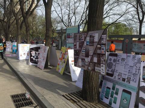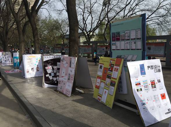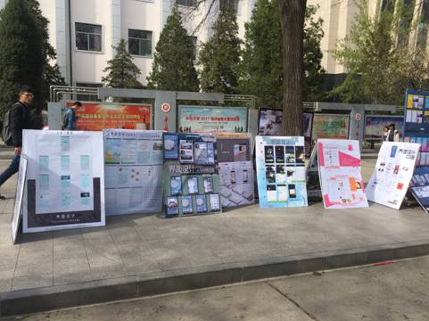 2017年4月11日下午,中北大学艺术学院14级541、542班在中央大道12号楼前举办了《界面设计》作品展览。