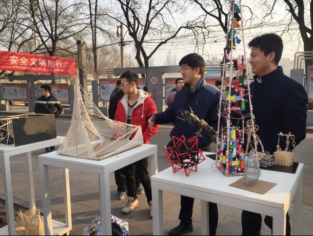 艺术学院2015级产品设计专业《立体构成》结课作品展于12月30日在中央大道举行。展出了15120541,15120542共计49名同学精心制作50余件作品。