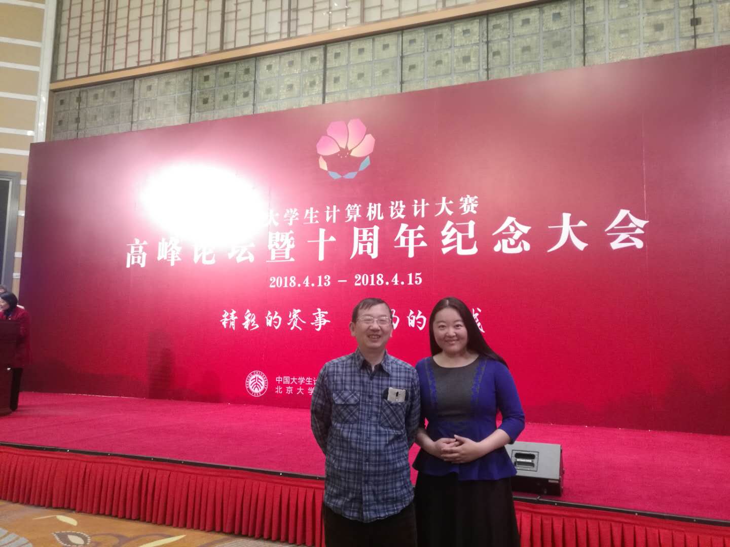 2018年4月13—15日,中国大学生计算机设计大赛高峰论坛暨十周年纪念大会在北京大学成功举办。大赛组织委员会由教育部高等学校计算机类专业教学指导委员会,软件工程专业教学指导委员会,大学计算机课程教学指导委员会、文科计算机基础教学指导分委员会联合组成。本次会议由北京大学信息科学技术学院承办,包括十周年纪念大会、高峰论坛和计算机基础教育研讨会三部分内容。中北大学艺术学院张奋飞老师代表山西省赛区赴京参会。