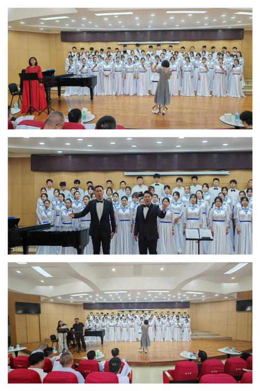 交流座谈前,双方在鸿学楼一层东厅共同观看了由艺术学院师生排练的“心中的太阳---矿工大合唱”,该部作品由八首歌曲及八段朗诵词组成,由著名作曲家孟卫东和著名词作家赵越联合创作,取材于西山煤电火热的生产生活场景,首开新中国合唱史上歌颂煤矿工人作品的先河,被广为传唱。通过合唱弘扬矿工能打硬仗、吃苦耐劳的奉献精神,不仅对参演的师生来说是一堂生动的思想教育课,同时也充分发挥了艺术学院在音乐、合唱、编剧等方面的优势。此次演出,也是学院创建的山西省文旅产教服融合研究生联合培养示范基地服务地方、助力产业发展的最新成果。