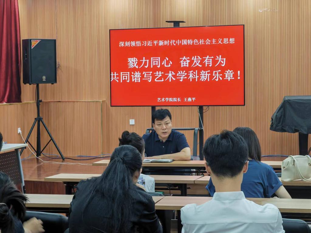 6月20日下午,艺术学院院长王燕平以《深刻领悟习近平新时代中国特色社会主义思想---戮力同心 奋发有为 共同谱写艺术学科新乐章》为题,为全院教工党员讲授专题党课。