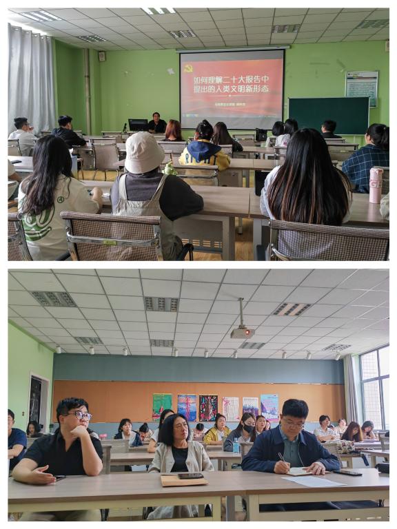 为深入学习宣传和全面贯彻党的二十大精神,2023年5月23日下午,艺术学院党委邀请校二十大精神宣讲团成员阚先学老师以《如何理解二十大报告中提出的人类文明新形态》为题,为全院教工党员和部分学生党员作了专题辅导,讲座由学院党委副书记田维飞主持。