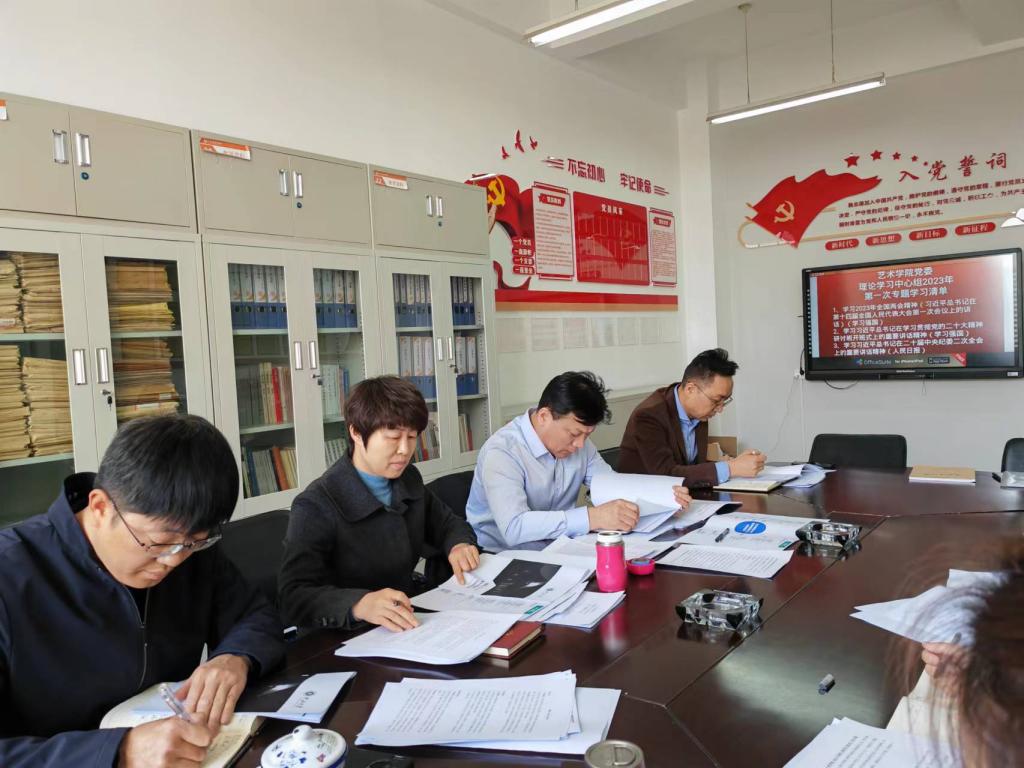 3月27日下午在九号楼519会议室,艺术学院党委举行理论学习中心组(扩大)第一次专题学习会,学习2023年全国两会精神、习近平总书记在学习贯彻党的二十大精神研讨班开班式上的重要讲话精神、习近平总书记在二十届中央纪委二次全会上重要讲话精神。学院领导班子成员、党委委员和各科室负责人参加会议。会议由艺术学院党委书记栗秀萍主持。