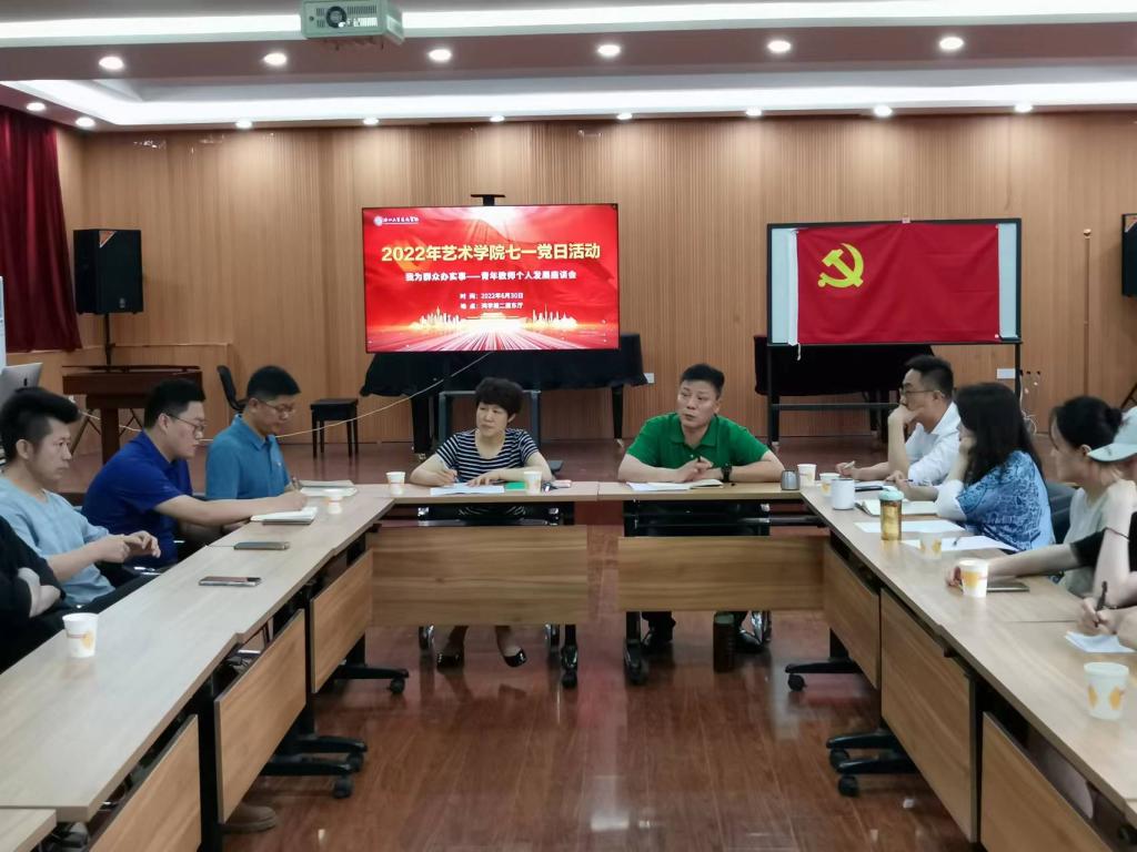 在庆祝中国共产党成立101周年之际,艺术学院党委举办“我为群众办实事”主题党日活动暨青年教师座谈会,倾听青年教师心声,共谈生活,共话成长,凝聚青年教师力量。学院领导班子成员、相关科室负责人参加会议,会议由院党委书记栗秀萍主持。