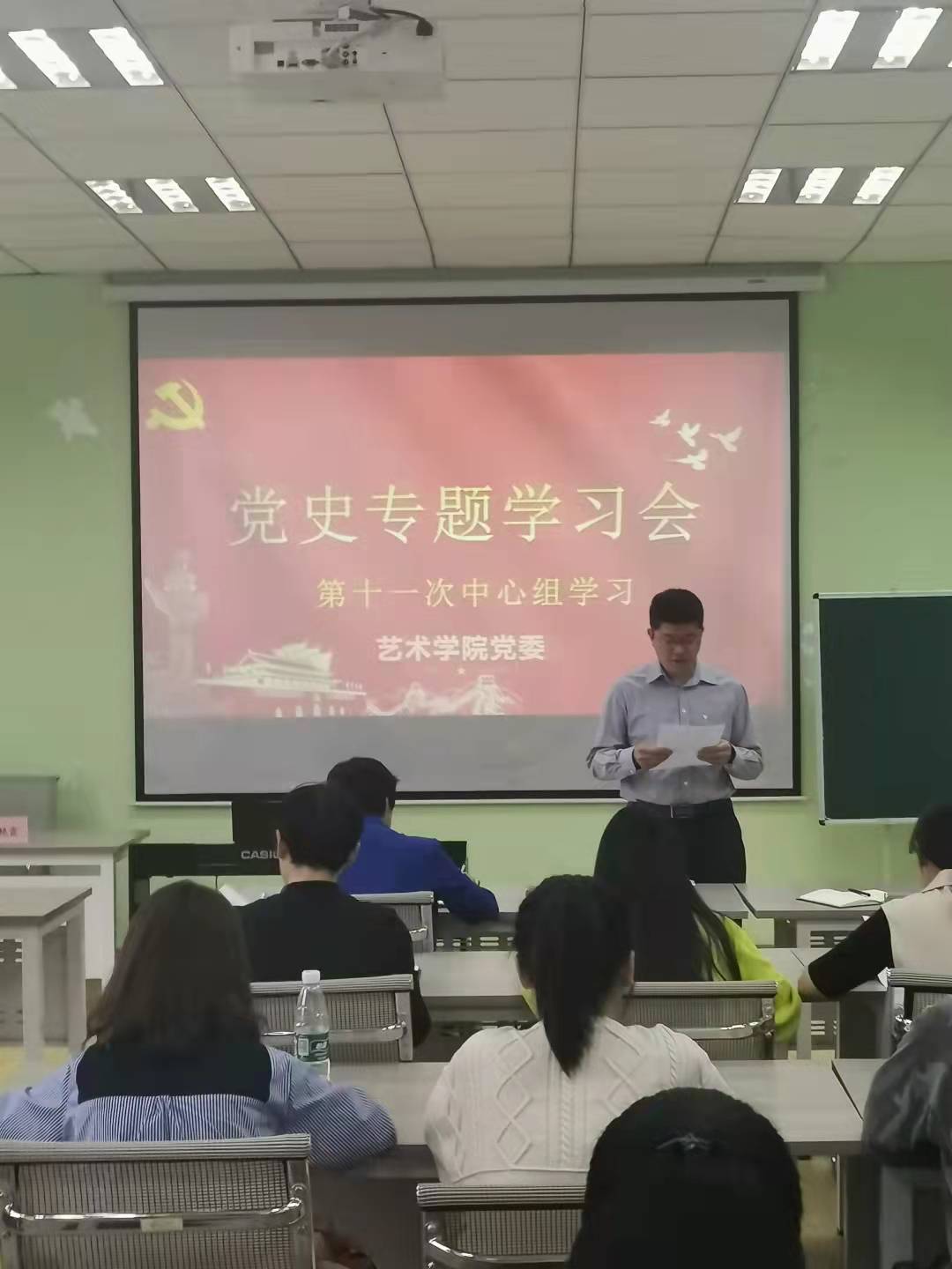 9月22日下午在九号楼526教室,艺术学院党委举行理论学习中心组党史学习教育第十一次专题学习会,围绕习近平总书记给全国高校黄大年式教师团队代表回信,习近平总书记在看望参加全国政协十三届四次会议的医药卫生界、教育界委员时的讲话,习近平总书记在清华大学考察时重要讲话精神进行学习。学院领导班子成员、党委委员和各科室负责人参加会议。会议由艺术学院党委书记夏瑞丽主持。
