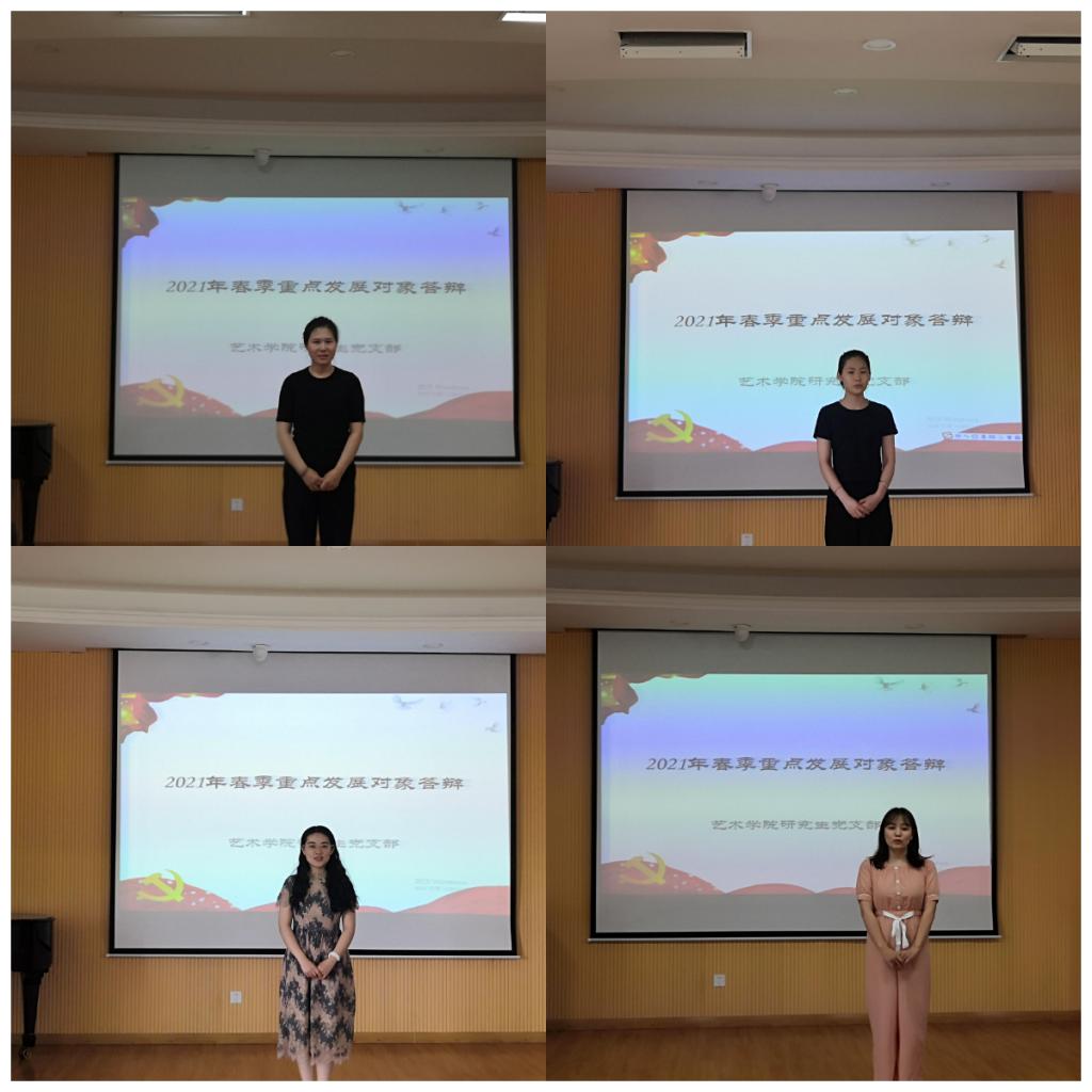 为加强对学生入党动机的考核,提高发展对象的政治素质和党性修养,进一步提高大学生党员发展质量,艺术学院各支部于2021年6月3-5日分别举行了2021年春季发展对象答辩面试。