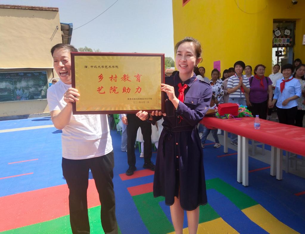 在六一儿童节这样一个特别的日子里,孩子们怀着一颗感恩的心,向一直以来给予他们艺术学习机会的大哥哥大姐姐们戴上了红领巾说一声谢谢。李艺老师作为支教团团长代表艺术学院祝同学们六一节快乐,并为同学们带来了教具。杨家井小学的校长为长期支持他们艺术教育的中北大学艺术学院颁发了“乡村教育、艺院助力”的荣誉牌匾。在欢乐多彩的文艺汇演中结束了本次充满意义的六一儿童节。