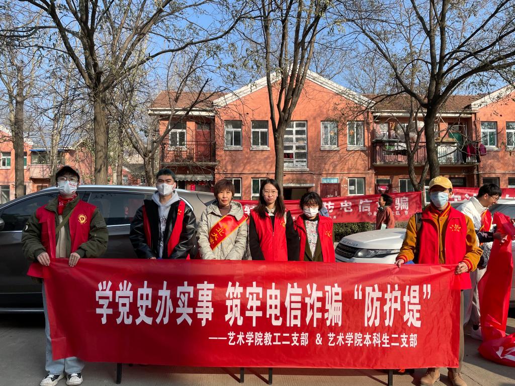 为响应中北大学党史办《关于充分发挥基层党组织战斗堡垒作用和党员先锋模范作用,进一步深化“我为群众办实事”实践活动的通知》,进一步加强我校学子防范电信诈骗意识和能力,遏止电信网络诈骗案件在我校的高发势头,艺术学院教工二支部、本科生二支部联合中北大学社区于11月19日开展“严厉打击电信网络诈骗犯罪,切实保障人民群众利益”宣传教育活动。