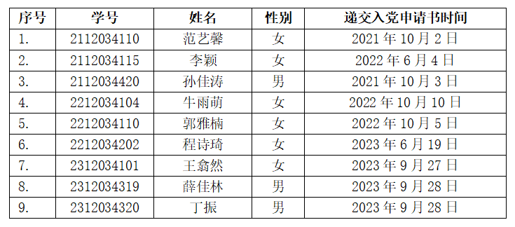 本科生第二党支部于2024年4月7日,在09519会议室召开了支部委员会,应到会正式党员5人,实到4人,经票决一致同意确定范艺馨等9名同志为入党积极分子。
