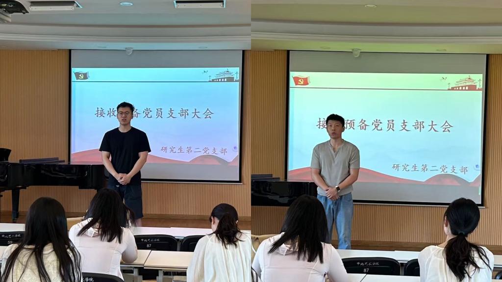 会议第四项,研究生第一党支部书记赵婧同志代表支委会报告2位名发展对象的审查情况。
