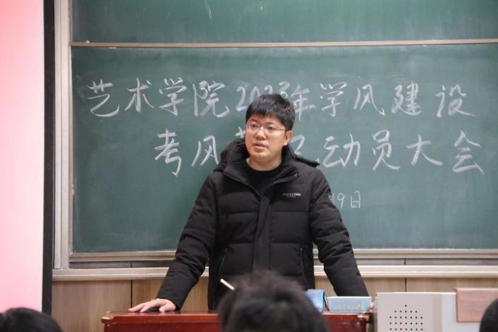 为严肃考风考纪,树立诚信学风,端正考试态度,以积极的心态迎接即将来临的期末考试,艺术学院于12月19日下午四点在09303H召开了“严守考风考纪,践行诚信为本”考风考纪教育动员大会。学院一至三年级各班班长、团支书、学习委员和全体辅导员共同参会,会议由院党委副书记田维飞主持。