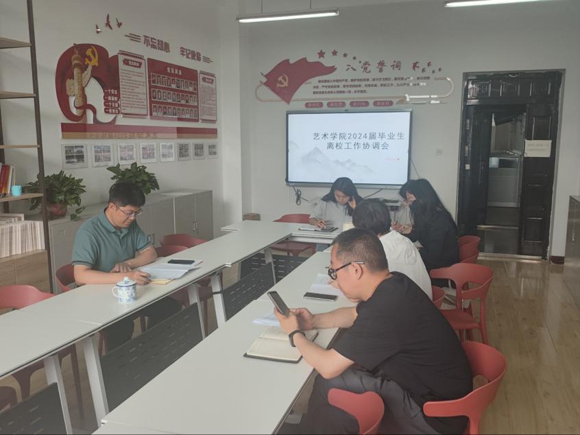 2024年6月7日,艺术学院在9号楼519会议室召开了2024年毕业生离校工作协调会,会议有学院党委副书记田维飞主持,学生科全体辅导员、毕业班全体班主任参会。