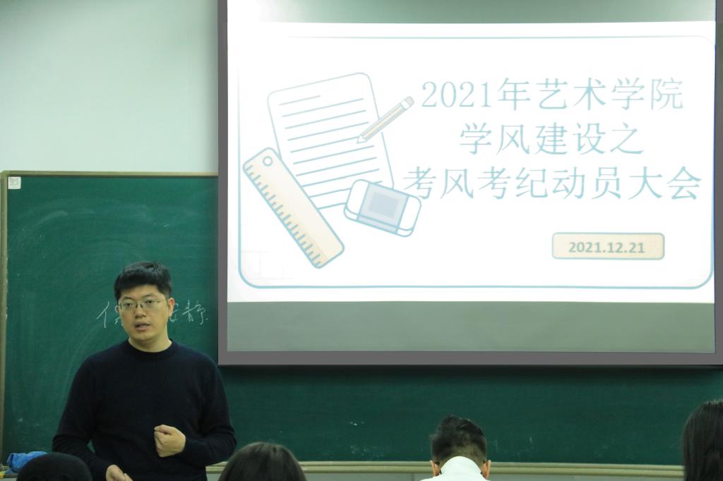 为进一步夯实我院学风建设,严肃期末考风考纪, 2021年12月21日下午五点在09522,艺术学院组织学风建设之考风考纪动员大会,全体大一和大二班长、团支书、学习委员参加会议,艺术学院党委副书记田维飞、艺术学院副院长李仁伟、教学科科长张丽君出席了此次会议,会议由学生科副科长吕超主持。