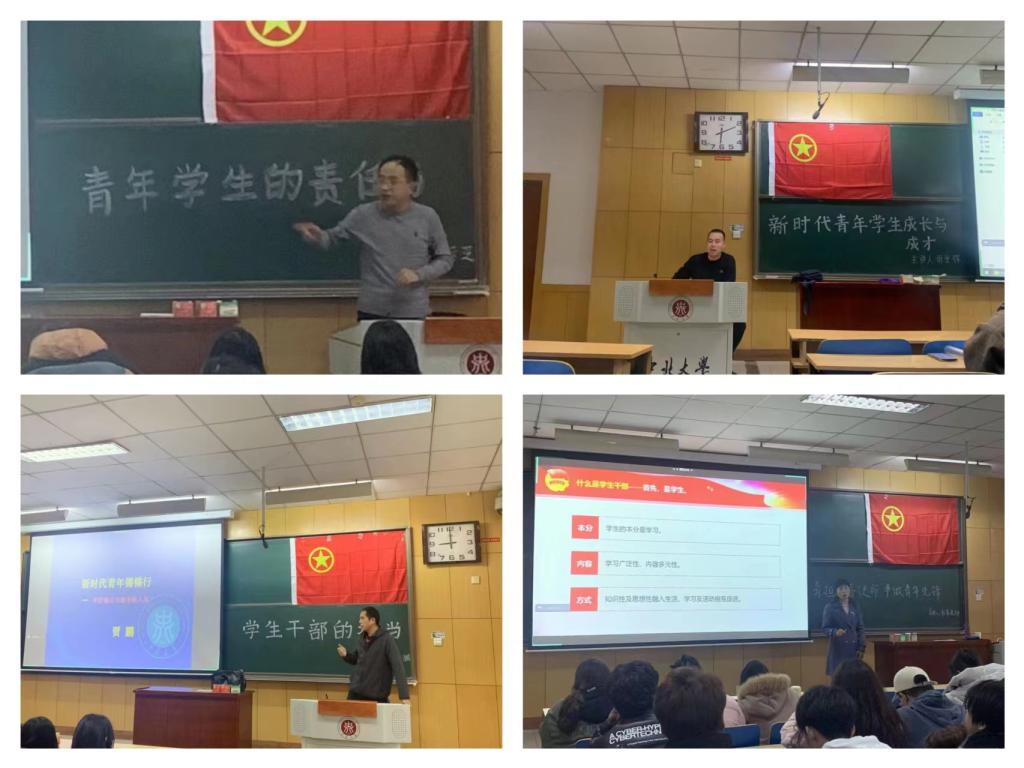 在这两天的培训里,能源动力工程学院党委书记李运芝老师、电气与控制工程学院党委副书记杜苇、体育学院党委副书记贾鹏和学生处毋登辉老师分别就《勇担青春使命,争做青年先锋》、《新时代青年学生成长与成才》、《学生干部的担当》、《青年学生的责任与义务》四个专题开展讲座,对同学们加强集体凝聚力,提高实践学习效率,深入学习中国共产党百年奋斗路,领会中国共产党远大理想和伟大目标等做了详细讲解。