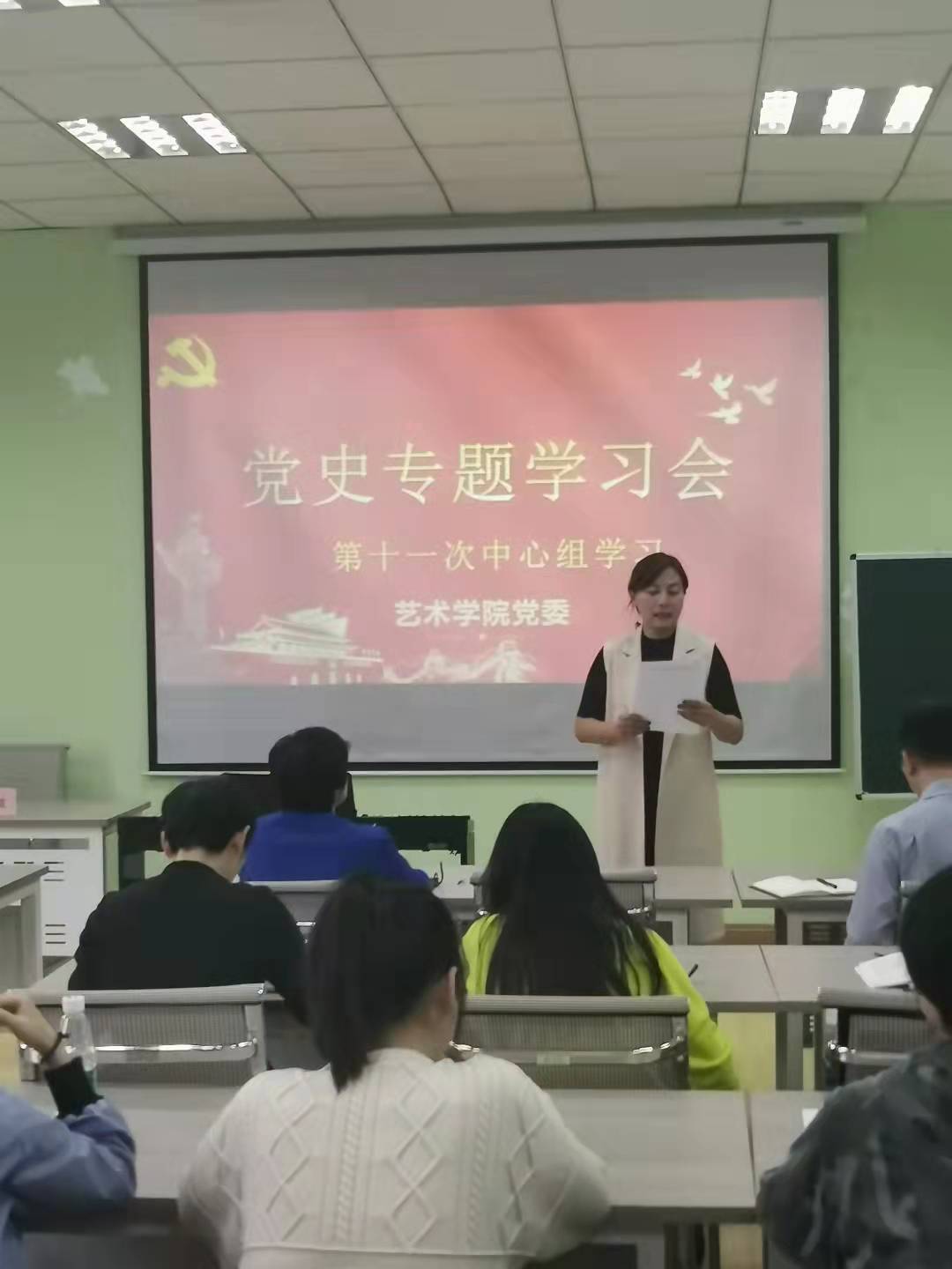 9月22日下午在九号楼526教室,艺术学院党委举行理论学习中心组党史学习教育第十一次专题学习会,围绕习近平总书记给全国高校黄大年式教师团队代表回信,习近平总书记在看望参加全国政协十三届四次会议的医药卫生界、教育界委员时的讲话,习近平总书记在清华大学考察时重要讲话精神进行学习。学院领导班子成员、党委委员和各科室负责人参加会议。会议由艺术学院党委书记夏瑞丽主持。