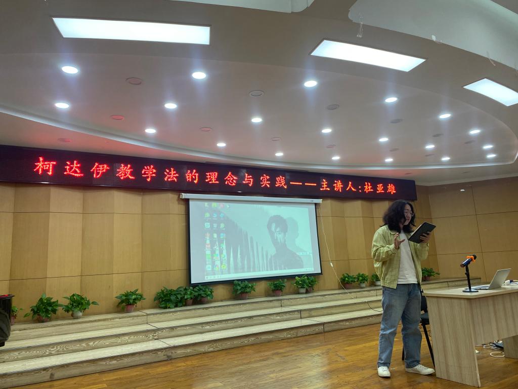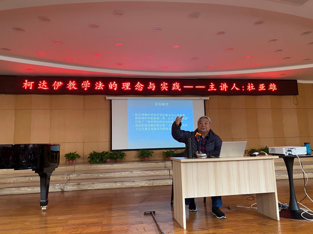 在上午的讲座中,杜亚雄教授从匈牙利的简介、柯达伊及其音乐教育理念、柯达伊教学法的操作方法、柯达伊教学法的伟大成绩等多个方面讲述了柯达伊与他的教学法理念,并在讲座接近尾声时呼吁师生:一定要树立文化自信,文化象征着一个民族的存在,鼓励师生关注对于民族文化的学习。