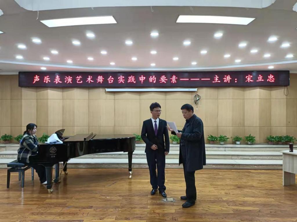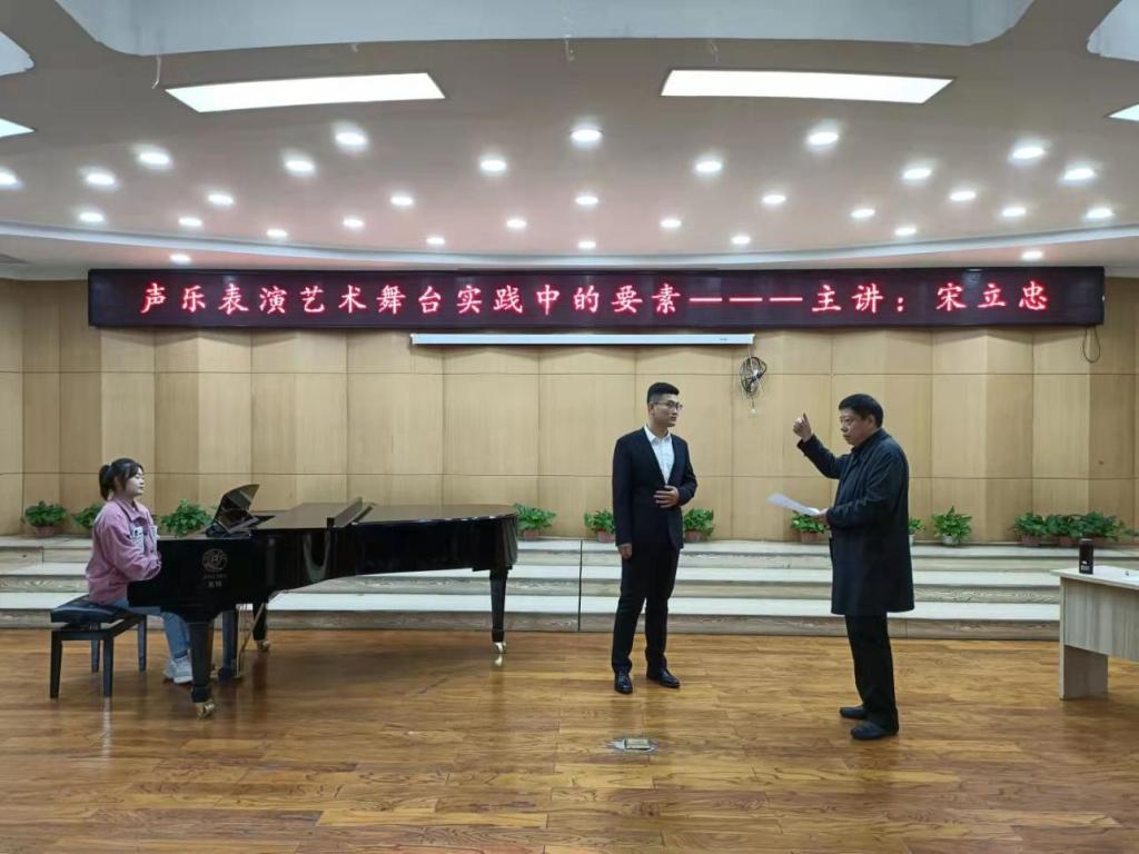 2021年10月15日上午9:00,在艺术学院东音乐厅举办了中北大学艺术硕士(MFA)声乐表演方向学术讲座——《声乐表演艺术舞台实践中的要素》,由我国著名男高音歌唱家宋立忠教授主讲。