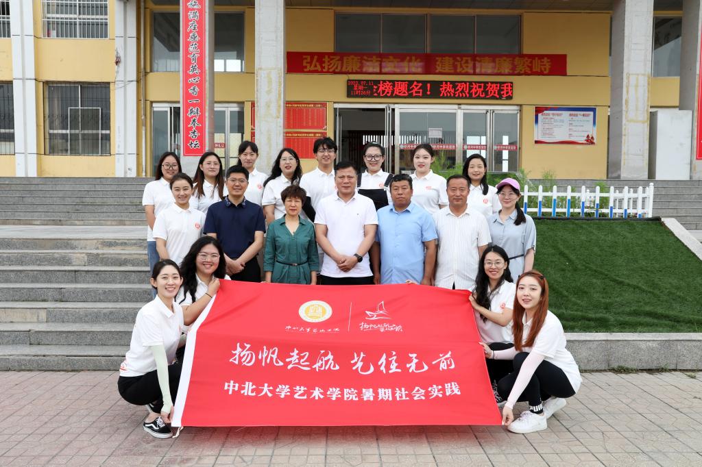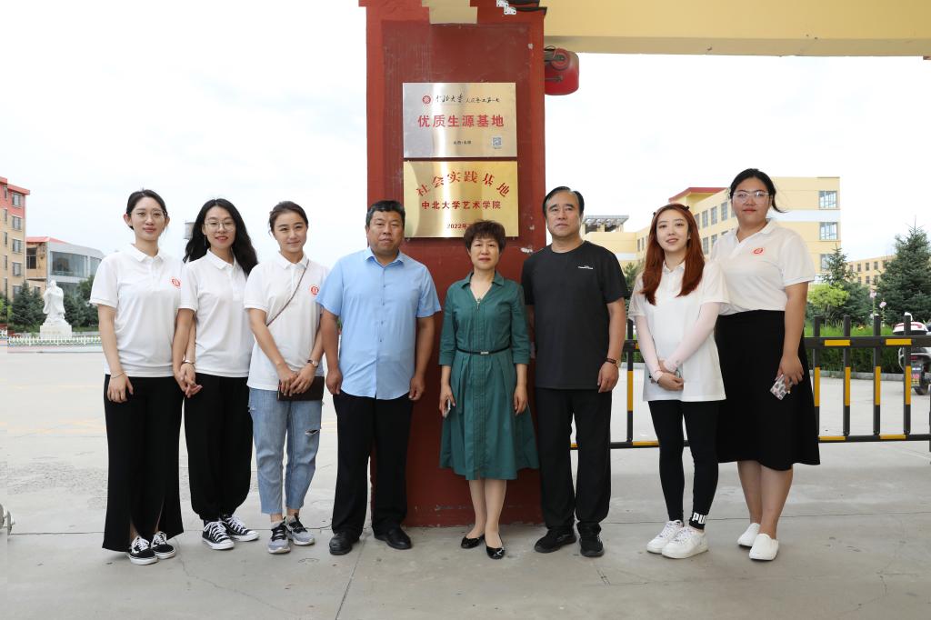 2022年7月11日,艺术学院党委书记栗秀萍、院长王燕平、党委副书记田维飞及柯枫老师一行来到繁峙县砂河镇砂河中学慰问我院2022年扬帆起航暑期社会实践队。砂河中学党支部书记、校长尹月恒、县教育局局长助理范福龙等热情接待,并举行了社会实践基地挂牌仪式。
