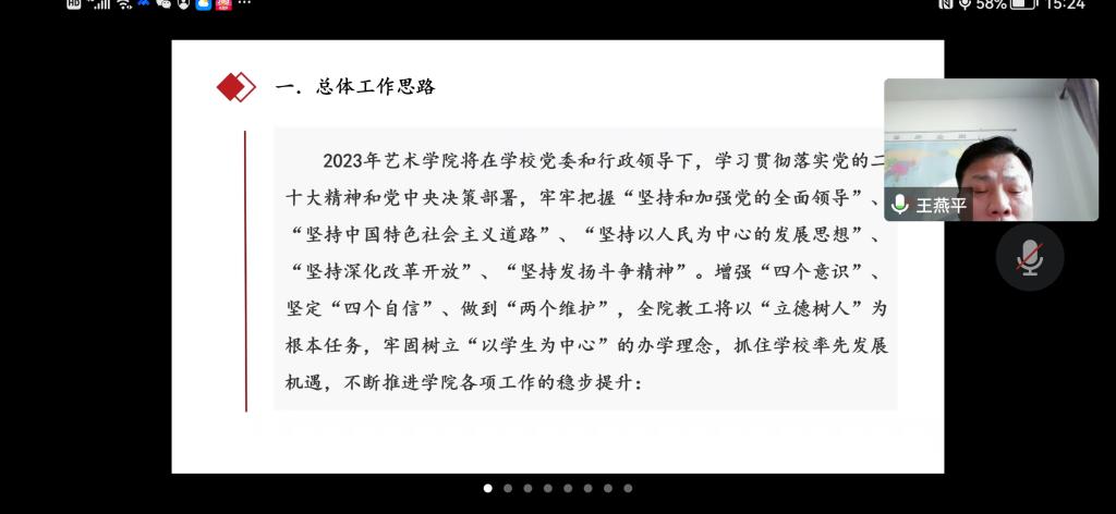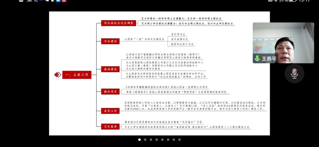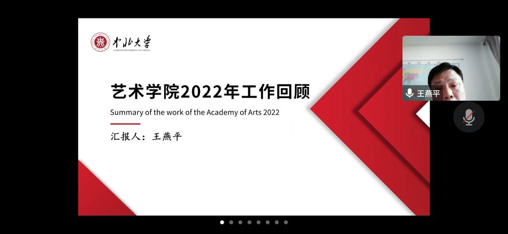12月31日下午3点,艺术学院在腾讯会议室召开了2022年度年终工作总结会议,全体教职员工参加了会议,会议由院长王燕平主持。
