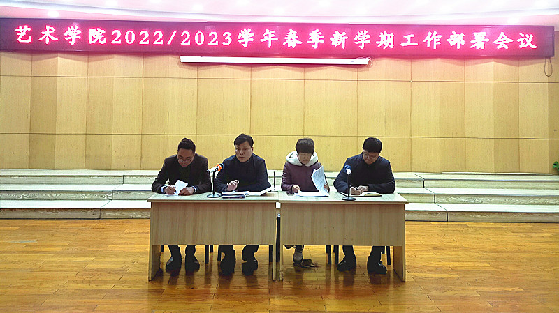 新学期开学之际,为确保各项工作的有序、平稳、高效开展,引领教职工以崭新的面貌、饱满的精神投入到新学期的工作中,2月20日下午,艺术学院在12号楼东厅召开了新学期工作部署会议,会议由院党委副书记田维飞主持,全体院领导及教职工参加了此次会议。