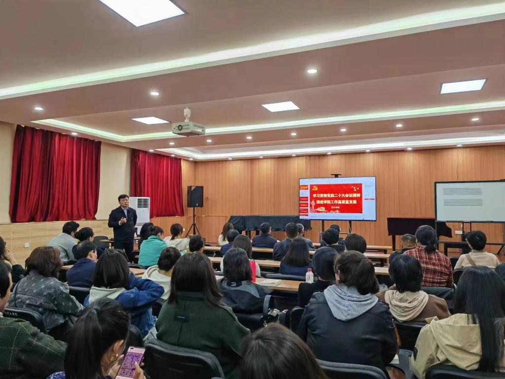 为深入学习贯彻党的二十大精神,深化主题教育走深走实,加快构建新的人才培养思路和学科发展格局,进一步推动艺术学院工作高质量发展,4月25日下午15:00在鸿学楼二层东厅艺术学院召开“学习贯彻党的二十大精神,推进学院工作高质量发展”大会。艺术学院院长王燕平、副书记田维飞及全院全体教职工参加会议。