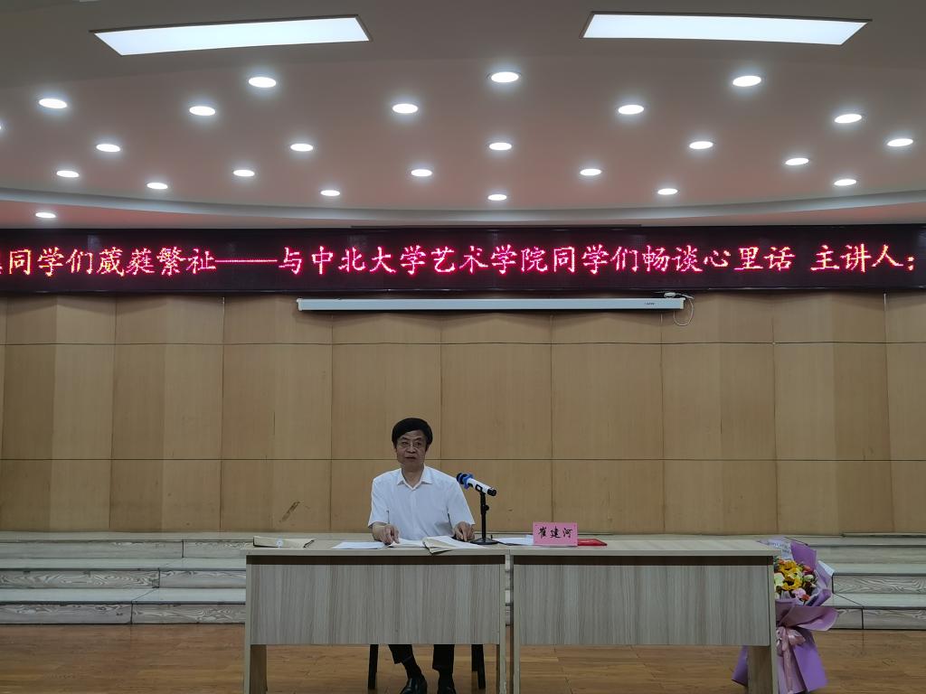 为深入贯彻落实习近平总书记关于加强高校毕业生就业工作的重要批示,贯彻落实党中央、国务院“稳就业”“保就业”决策部署和上级教育部门“确保2023年高校毕业生充分高质量就业”的安排要求,认真推进落实访企拓岗促就业,2023年6月11日下午15:00艺术学院邀请山西省实验中学党委副书记崔建河教授在鸿学楼一层东厅开展了“愿同学们葳蕤繁祉——与中北大学艺术学院同学们畅谈心里话”主题就业指导讲座。讲座由艺术学院院长王燕平教授主持。