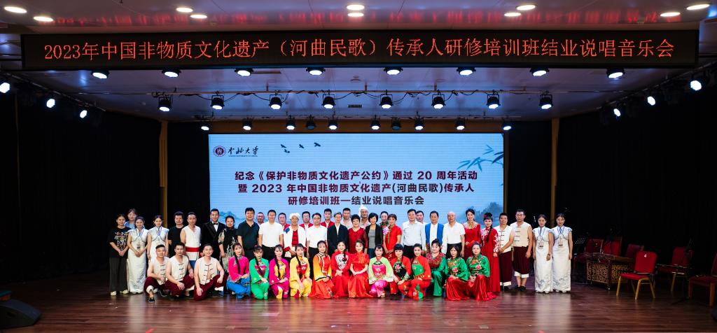 此次音乐会,为纪念《保护非物质文化遗产公约》通过20周年,回顾非物质文化遗产保护中所取得的成果,音乐会以语言讲述的形式,将非物质文化遗产活态衍化中所保留的珍贵特质与新时代文化价值导向相融合,形成了独具特色的“说唱”音乐主题。由国家级非物质文化遗产传承人张美兰、杜焕荣;国家一级演员王掌良;市级非物质文化遗产传承人张混良、张晓霞、胡秀珍及研修培训班全体学员共同演绎19首经典河曲民歌,受到领导、现场嘉宾及社会各界的一致好评!