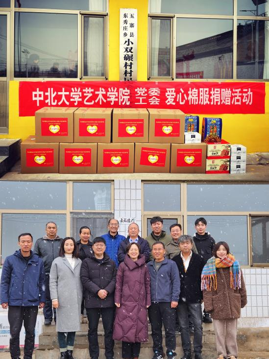 为了进一步巩固学习贯彻习近平新时代中国特色社会主义思想主题教育的学习成效,助力乡村振兴,11月15日中北大学艺术学院党委及院工会开展“艺心为民暖冬行”暨文化艺术下乡活动。学院党委书记郭云霞、副书记田维飞、工会主席陆晨曦、音乐系曹艺老师及2名艺术志愿者驱车三个多小时,到达忻州市五寨县东秀庄乡小双碾村和狮子沟新村,看望我校在两村工作队的一线老师们,同时为当地村民们送去学院师生们捐赠的9箱棉衣和军训服,捐赠仪式在小双碾村进行。郭书记代表中北大学艺术学院将师生们捐赠的物品交付驻村工作队,并表达了艺术学院师生关心支持“乡村振兴”事业,愿为乡村百姓作贡献的心声。