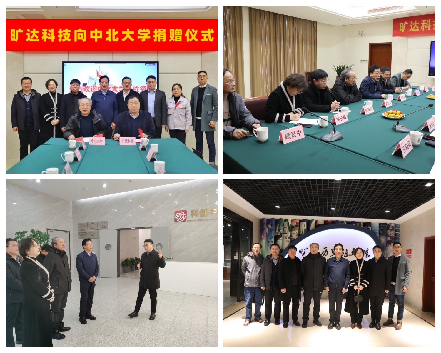 调研交流第一站,艺术学院党委书记郭云霞、副院长李仁伟走访了江苏省知名企业旷达科技集团股份有限公司,在该公司总工程师吴双全的陪同下,参观了旷达科技企业文化馆、科创中心,对企业的发展历程与成就、科技创新成果等方面进行了深入了解,并在人才需求、成果转化、校企合作等方面进行了积极的探讨与交流。调研座谈前,双方举行捐赠仪式,为了支持中北大学教育发展事业,旷达科技集团每年面向艺术学院和材料学院捐赠20万,共计5年,两个学院各占50%。校党委副书记雷锋斌和校教育发展基金会理事长薛实军分别代表学校接受捐赠和签约。