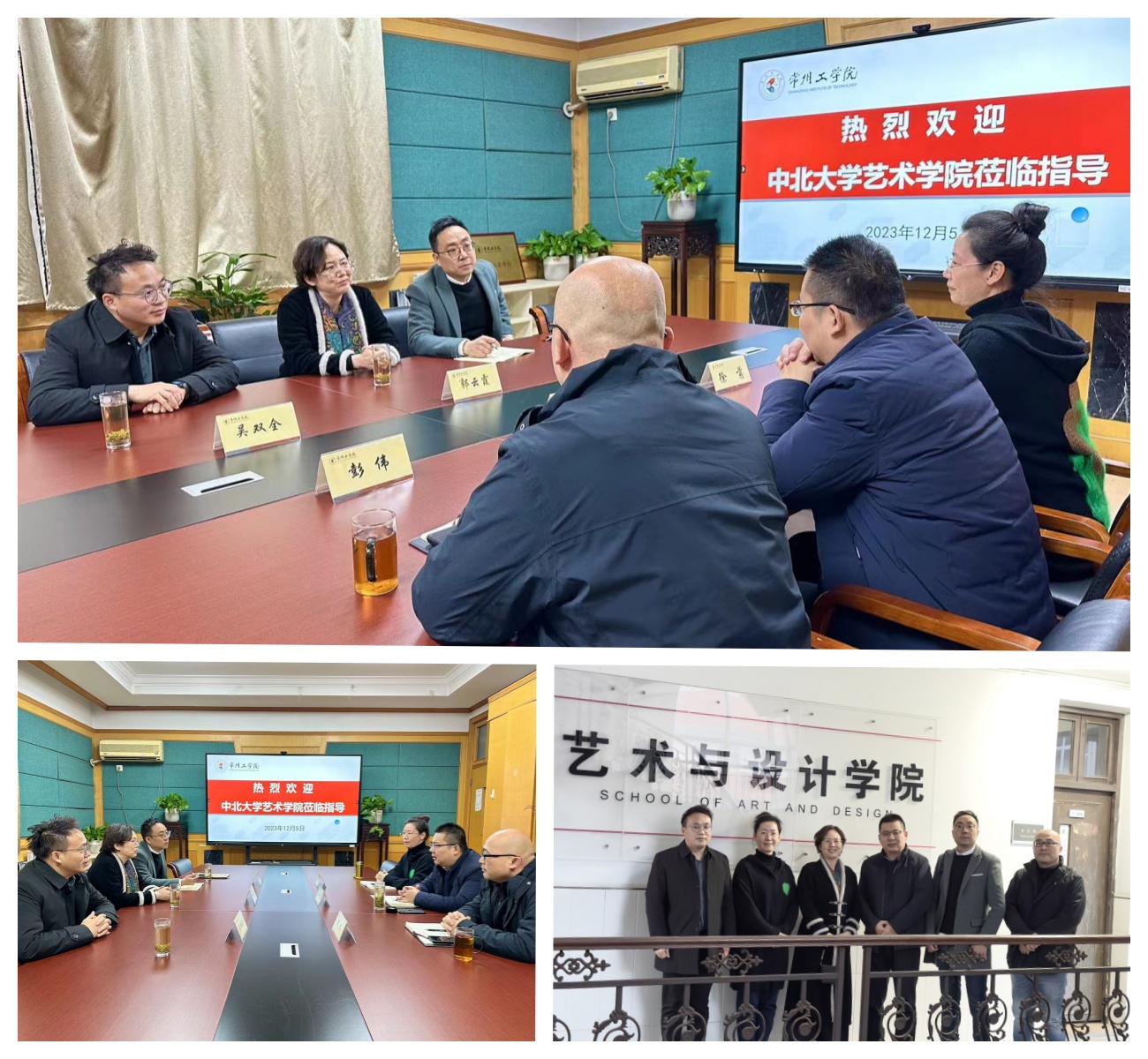 调研交流第二站,艺术学院党委书记郭云霞、副院长李仁伟赴常州大学美术与设计学院进行走访调研。美术与设计学院院长黄海波、党委书记安宁、副院长钟砚涛等院领导对中北大学艺术学院一行表示热烈欢迎,并陪同参观了学院设计实验室、项目实训室等教学科研场所。随后,双方进行了深入的交流座谈。艺术学院党委书记郭云霞、美术与设计学院院长黄海波分别介绍了各自学院的基本情况,并围绕学科专业建设、人才培养、实践教学、师资保障及学生就业等方面分享经验与做法,并表示双方要继续加强交流与沟通。