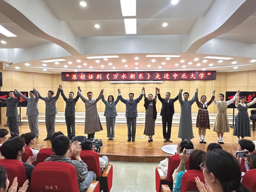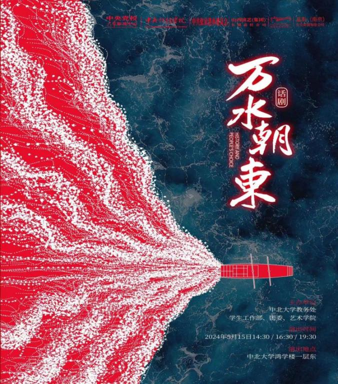 2024年5月15日,一部充满历史情怀与艺术魅力的话剧《万水朝东》在中北大学鸿学楼一层东厅连续上演三场。此次演出由中北大学教务处、学生工作部、团委以及艺术学院联合主办,旨在通过话剧这一艺术形式,进一步推动校园美育工作,提升师生们的艺术鉴赏能力和文化素养。