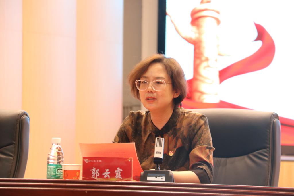 最后,艺术学院党委书记郭云霞作闭幕讲话。她寄语广大团员青年,一要坚定理想信念,树立正确的人生观、价值观和世界观;二要勤奋学习,做强国复兴的担当者;三要以艺德行天下,做德艺双馨的艺术人;才四要投身实践,在社会实践的熔炉中淬炼优秀品德。