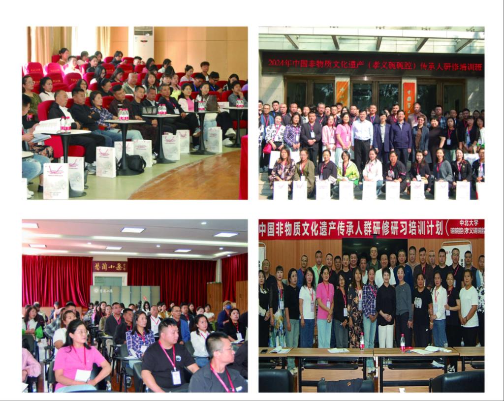 此次“研培计划”依托中北大学教学平台,发挥我校学科优势,采用数字化存储技术,建立非遗数据库,构建“数字化共享+个性化生产”的创新传承发展模式,全面提升非遗的社会能见度,促进非遗与现代生活的融合,丰富非遗保护的具体举措,激发非遗传承的活力,密切院校与地方社区的联系,促进相关的学科专业建设,增强高校的文化传承和文化创新能力。自开班以来,共邀请国内30余位知名专家、学者为学员讲授理论课、拓展课、实践课,培训总学时达226课时,参与培训的非遗传承人、技艺从业者、项目持有者共计110余人,挖掘、整理孝义碗碗腔传统戏剧近30余部,排演舞台剧目20余首,整理非遗传承人口述材料近15万字(拟录专著),带队交流、研讨及走访30余次。
