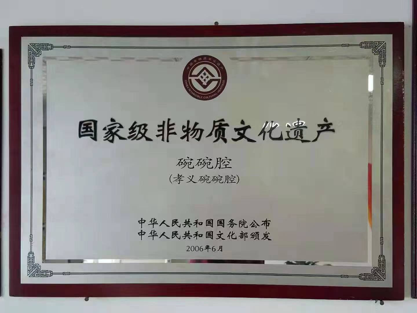 2006年,“孝义碗碗腔”经中华人民共和国国务院批准列入国家级非物质文化遗产名录,是首批被列入国家非物质文化遗产保护名录的山西传统戏剧,是孝义最具地方特色的文化名片。